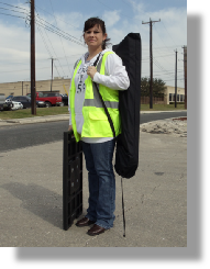 Ped-in-a-Bag® supplies enhanced conspicuity at crosswalks, in accordance with the MUTCD, alerting motorists to local laws concerning yielding to, or stopping for pedestrians in crosswalks.